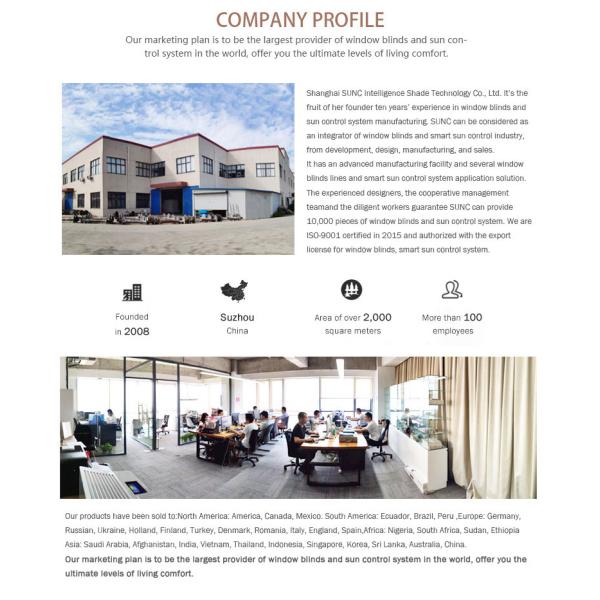 China SUNC Group is a private holding group founded in 2008, with its headquarters in Shanghai, the Modern city from China. The Group is principally engaged in the manufacture, sales, and service of construction products and window covering products, as well as metal processing, precision machinery production.